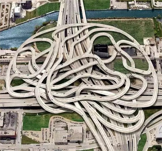 ▼縱橫交錯(cuò)的立交橋上,大大小小的車輛來(lái)回穿梭,遠(yuǎn)遠(yuǎn)看去這座橋像人的大腦。