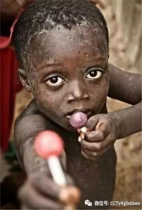 ▼這是非洲難民區(qū)的一個(gè)孩子,常年忍饑挨餓,他有幸得到兩個(gè)棒棒糖,卻依然堅(jiān)持送攝像叔叔一個(gè)棒棒糖。