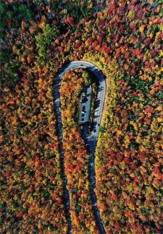 ▼在種滿各種樹(shù)木的森林里,開(kāi)辟的出兩條公路,就像掛在脖子上的吊墜一樣。