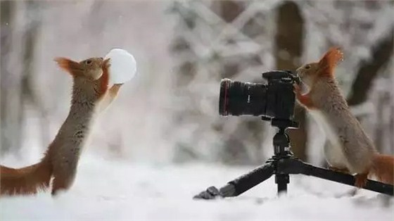 ▼兩只小松鼠,一個(gè)當(dāng)模特,一個(gè)當(dāng)攝影師在雪中拍照,可愛(ài)到爆!