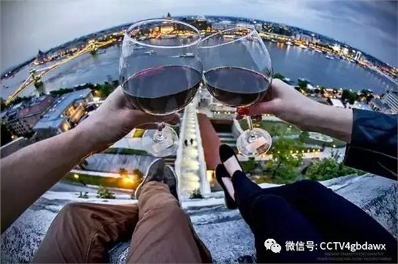 ▼一對(duì)情侶,坐在幾十層高的建筑物樓頂喝紅酒。這種刺激的浪漫,可不是一般的人能夠承受得住的。