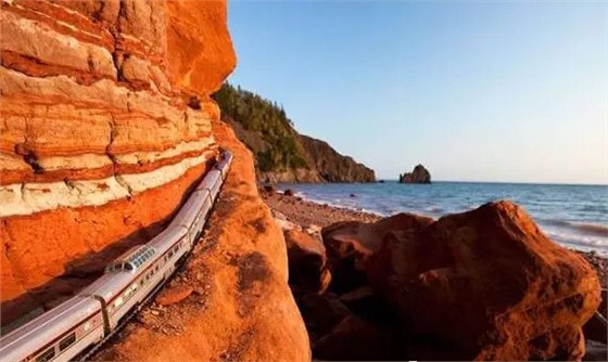 ▼在懸崖峭壁下行駛的火車,既要防止懸崖上的落石,還要擔(dān)心是否會(huì)脫軌掉下懸崖。