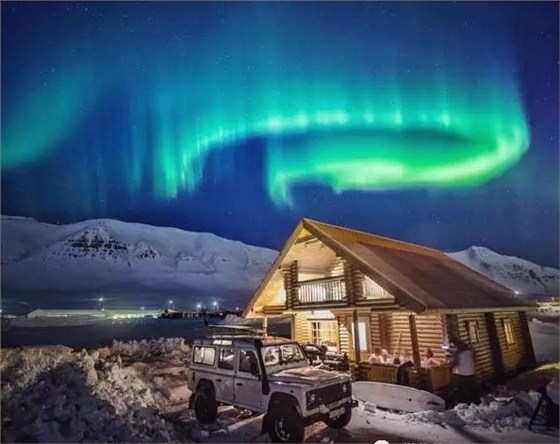 ▼零下20度的夜晚,在溫暖的木頭房子外,和朋友們一邊聊天一邊欣賞難得一見(jiàn)極光,還有什么比這更愜意的事呢?