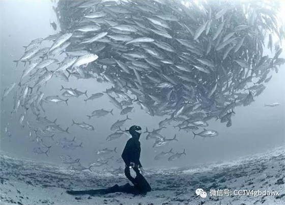 ▼海底潛水,有幸看到成千上萬(wàn)只魚(yú)群聚集而來(lái),這陣勢(shì)好像要吃掉這個(gè)異類一樣。