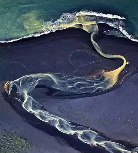 ▼冰島的河流,海水清澈透明,在海風(fēng)的吹拂下就像一條條銀白色的絲帶,隨風(fēng)起舞。