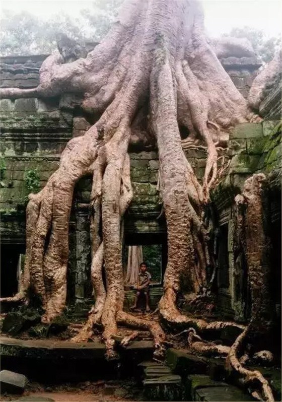 ▼粗大古老的樹(shù)根,似乎要把房子壓塌了的感覺(jué)。這種成了精的古樹(shù),還是不要輕易靠近啦!