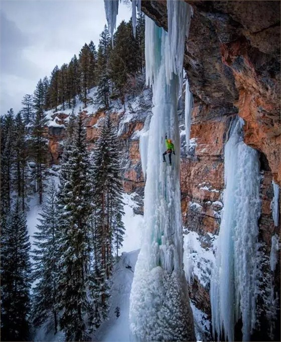 ▼天寒地凍,攀巖者不再挑戰(zhàn)懸崖峭壁,開(kāi)始嘗試攀爬巨大垂直的冰柱了。