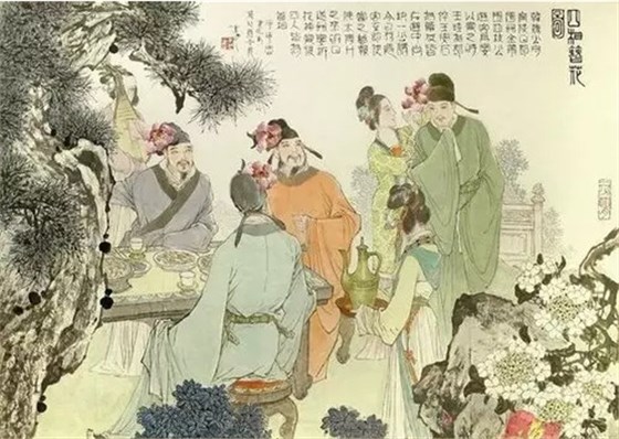 對于官方來說,戴花是上下級之間聯(lián)絡(luò)感情的方式,更是一種禮儀,凡圣節(jié)慶壽、立春入賀、聞喜賜宴、祭祀天地祖先之類的活動中,人人皆戴宮花。《宋史·禮》記載:“前二刻,御史臺、東上閣門催班,群官戴花北向立,內(nèi)侍進班齊牌,皇帝詣集英殿,百官謝花再拜”,皇帝召集朝會,戴花是百官必須履行的程序。