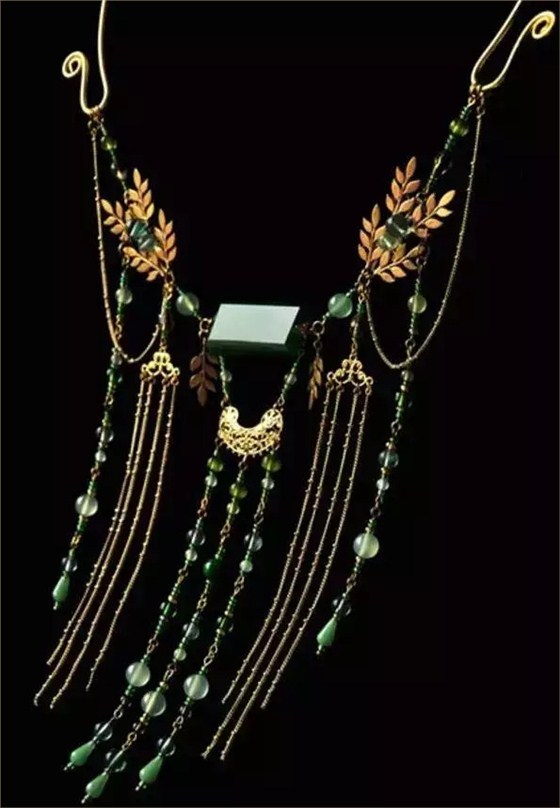 瓔[yīng]珞[luò]古代用珠玉串成的裝飾品,多用為頸飾,瓔珞原為古代印度佛像頸間的一種裝飾,后來隨著佛教一起傳入我國,唐代時,被愛美求新的女性所模仿和改進(jìn),變成了項(xiàng)飾。它形制比較大,在項(xiàng)飾中最顯華貴。