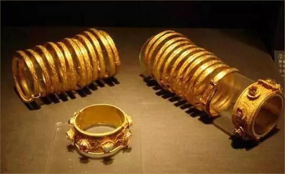 這是一種我國古代女性的纏繞于臂的裝飾,是用金銀帶條盤繞成螺旋圈狀,所盤圈數(shù)多少不等,一般三至八圈,也有多到十二三圈的。