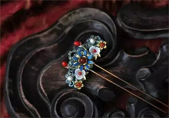 簪[zān]是笄的發(fā)展,同樣起固定發(fā)髻之用,在前端加以紋飾,雕刻成植物(花草)、動物(鳳凰孔雀)、吉祥器物(如意)等形,并可用金、玉、象牙、玳瑁等貴重材料制作,工藝也愈發(fā)豐富,有鏨花、鏤花及盤花等。