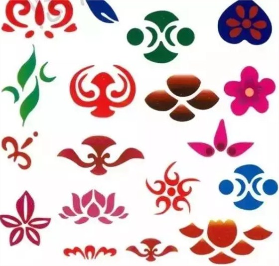 花鈿[diàn]是古時婦女臉上的一種花飾。花鈿有紅、綠、黃三種顏色,以紅色為最多,以金、銀制成花形,蔽于臉上,是唐代比較流行的一種首飾?;ㄢ毜男螤畛坊钔?,還有各式小鳥、小魚、小鴨等,十分美妙新穎。