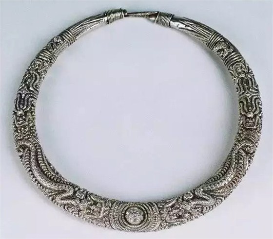 頸飾是原始社會就很普遍的裝飾,春秋戰(zhàn)國時代的頸飾出土不少,河南三門峽上村嶺虢國墓地出土頸飾,其中一件系由許多不同形狀的〓組成,其余為〓形器及一小系璧。