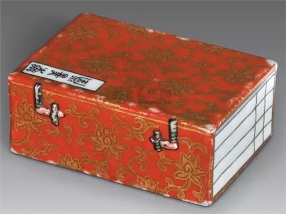清中期珊瑚紅描金花卉書(shū)卷鎮(zhèn)紙