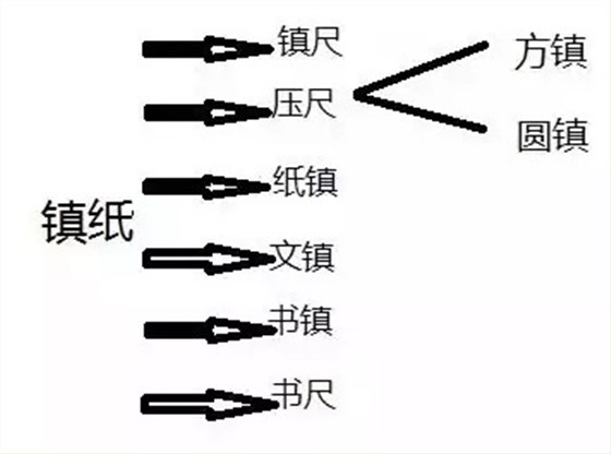現(xiàn)代人把鎮(zhèn)紙、壓尺合稱(chēng)為鎮(zhèn)紙,這是社會(huì)發(fā)展的結(jié)果,所以紙鎮(zhèn)、文鎮(zhèn)、鎮(zhèn)尺、書(shū)鎮(zhèn)等現(xiàn)在都統(tǒng)一叫鎮(zhèn)紙。