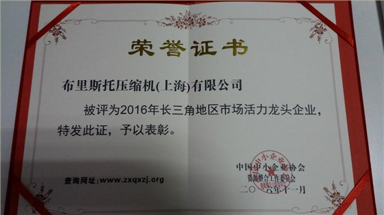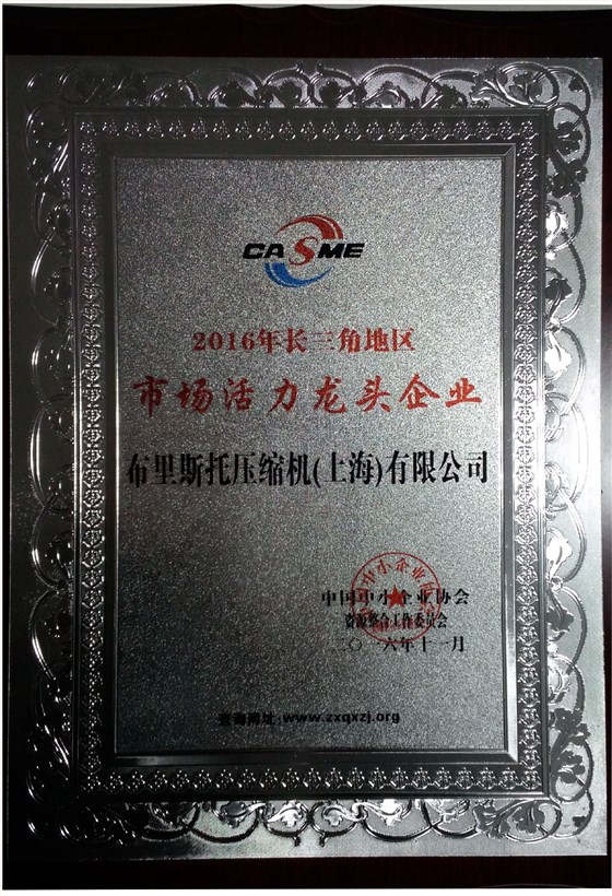 2016空壓機(jī)行業(yè)知名的無(wú)油空壓機(jī)廠家:布里斯托壓縮機(jī)52ankang.cn經(jīng)過(guò)一輪激烈的評(píng)審,近日布里斯托壓縮機(jī)(上海)有限公司被中國(guó)中小企業(yè)協(xié)會(huì),資源整合工作委員會(huì)評(píng)為“2016年長(zhǎng)三角地區(qū)市場(chǎng)活力龍頭企業(yè)”品牌企業(yè)榮譽(yù)稱號(hào),成為全國(guó)同行業(yè)中獲得此殊榮的佼佼者。