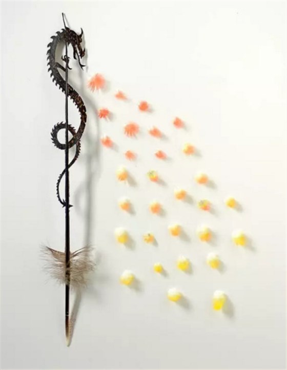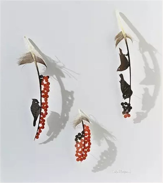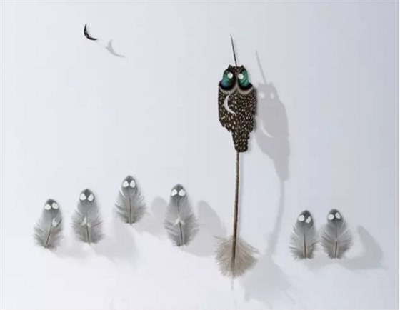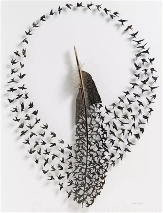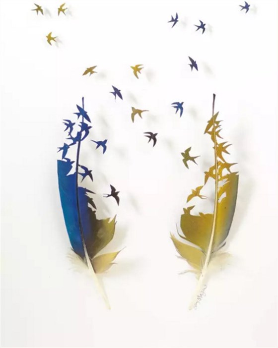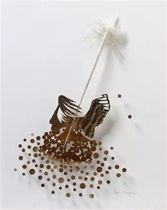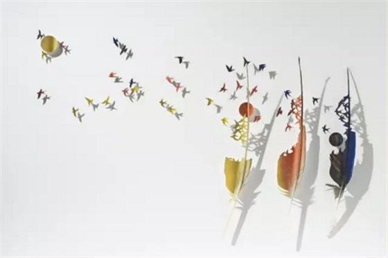 晚上他就進(jìn)工作室賦予這一根根羽毛以生命。