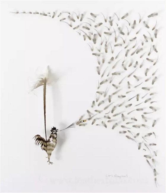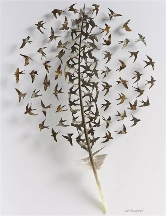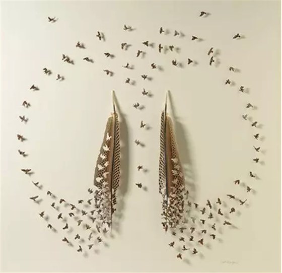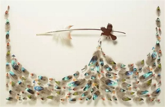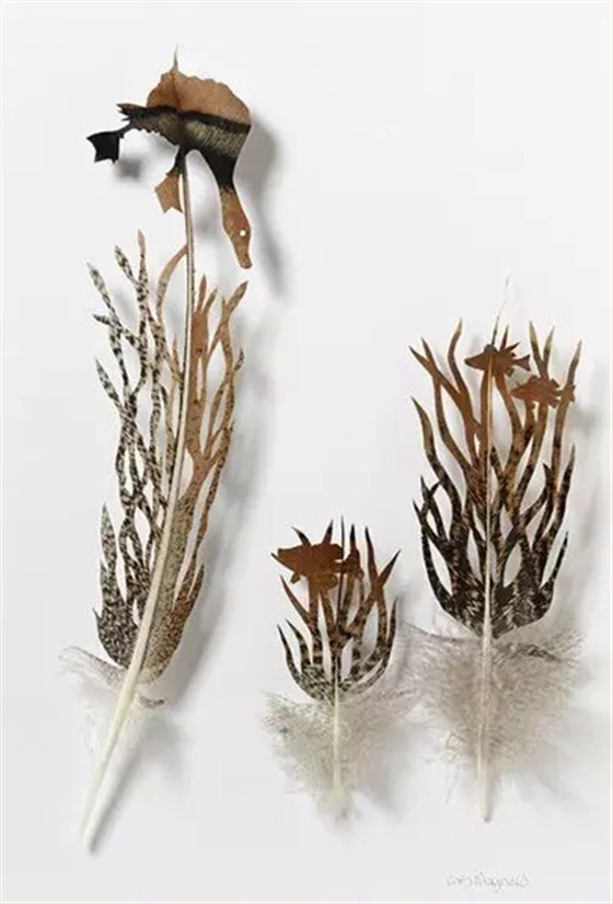 由于創(chuàng)作的羽毛全都撿拾而來,
