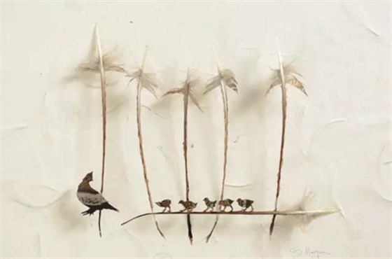 由于創(chuàng)作的羽毛全都撿拾而來,